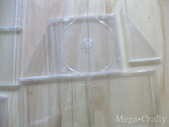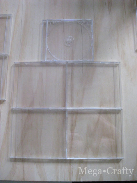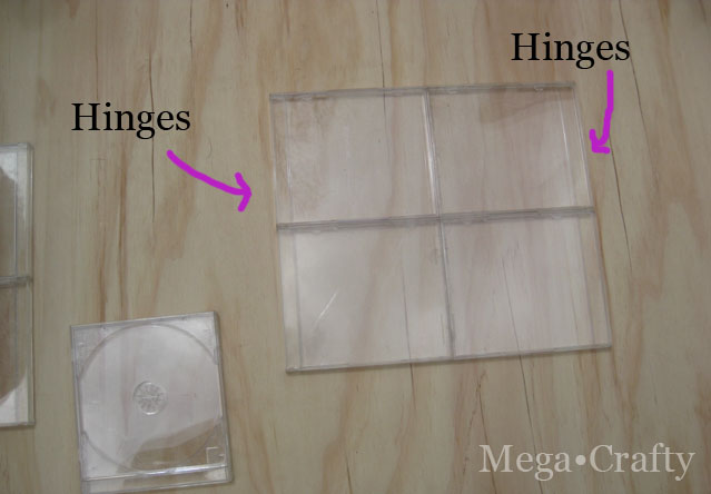 Start with clean cd cases. More than a few of mine needed a bit of dusting off and some old price tags removed. Since most of my cases also had black plastic disc holders in them, and I only needed the clear parts of the cases, I removed and discarded the black plastic. When you remove the disc holders you’ll notice it leaves an open space near the hinge. I’ll talk more about this in Step 2, I just wanted to point out that this is normal and nothing to worry about.