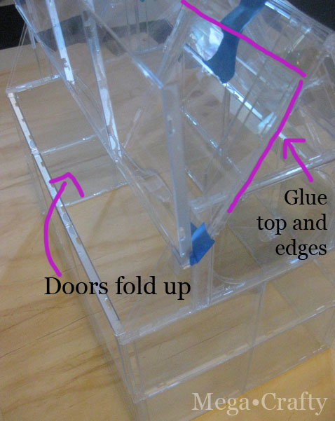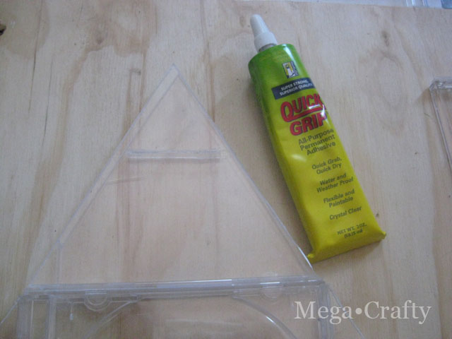 You’ll need four cases for each side of the roof. Open the cases so they are laying flat, and glue the edges together to make a panel. Be careful not to get glue into the hinge or else your panels won’t be able to fold up once they are dry.